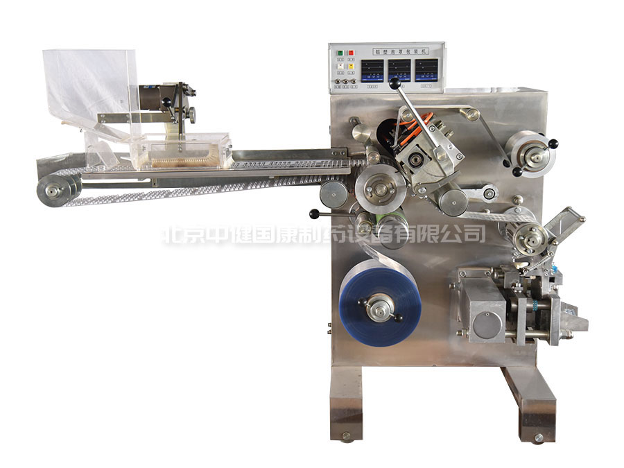 本产品为小辊式铝塑泡罩包装机。以PVC硬片和涂有粘合剂的PTP铝箔为包装材料,以泡罩板块形式包装各种形状规格的粒状物品。采用小直径内加热接触辊式加热器自动、连续地实现PVC硬片和PTP铝箔的加热软化。本机的特点就是配以小直径负压成型的辊式吸塑模辊,该辊具有两种功能:一是把经过加热软化的PVC硬片通过辊面的吸泡罩模孔吸出泡罩,二是与热封辊协同工作把经过加热的PTP铝箔与PVC硬片一起完成热封。然后经过加热打字后进入冲裁一次性冲出成品板块。