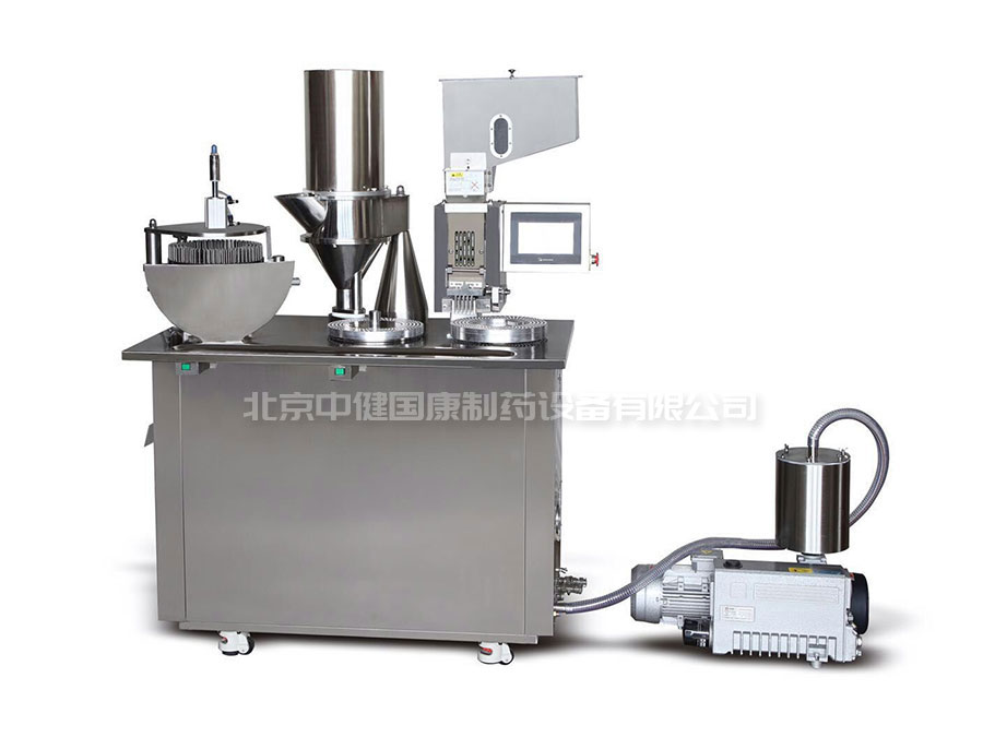 本机由送囊调头分离机构、药料充填机构、锁紧机构、变频调速机构、气动控制和电气控制系统、保护装置等部件以及真空泵和空气压缩机(客户自备)组成。国产或进口机制胶囊都可适用,成品合格率达到98%以上。