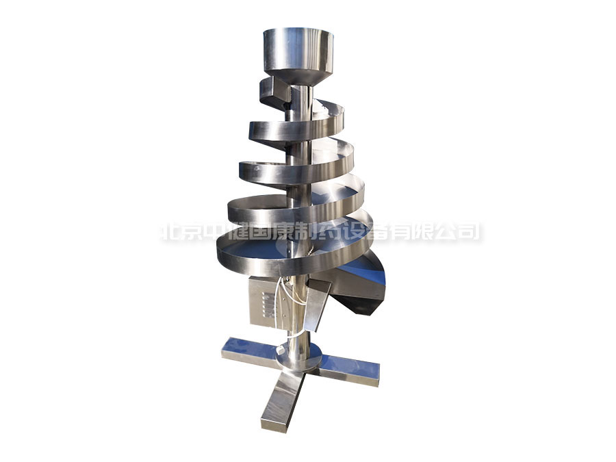 该机为螺旋式塔形结构,由储料斗、螺旋溜槽和底座三大部分构成。该机器设计轻巧,美观大方,操作简单,使用方便。