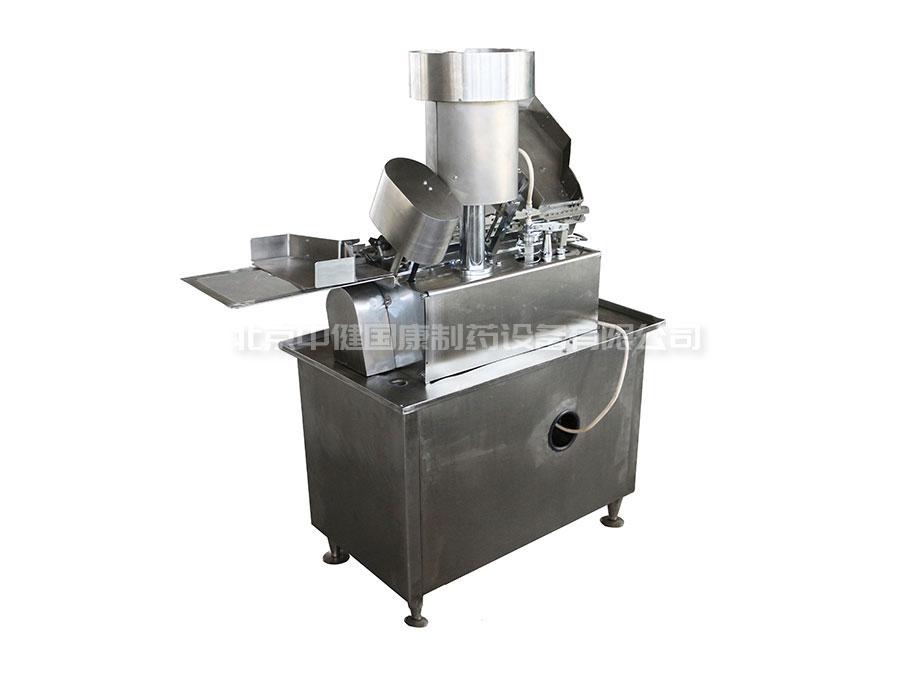 本机是口服液灌装生产主机,使用于10ml直管瓶的灌装、上盖、封口。釆用螺杆进瓶,送瓶可靠。计量泵采用陶瓷泵,精度高。双头灌装,每瓶灌装两次;电磁振荡送盖,上盖率高;三刀离心式轧盖,轧口美观。该机灌装封口合二为一,设计完善,具有结构紧凑、计量准确、运行可靠等特点,是口服液灌封的理想设备。