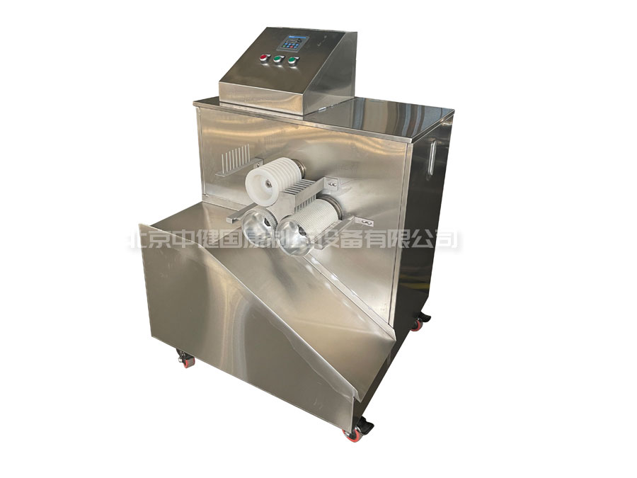搓丸机广泛应用于工业三剂化工、制药、活性炭及食品加工行业的挤条后的搓丸生产工艺。药条经过导条轮同步进入搓丸刀轮,连续、快速的切搓出圆整均匀的药丸。